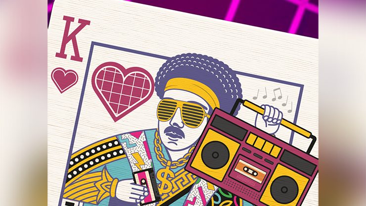 Step back into the neon era with 80s Playing Cards: a stunning collector’s deck blending retro nostalgia with professional quality. Printed by USPCC on premium Casino stock with a smooth Linen Finish, this deck delivers flawless handling for magicians, cardists, and players alike.