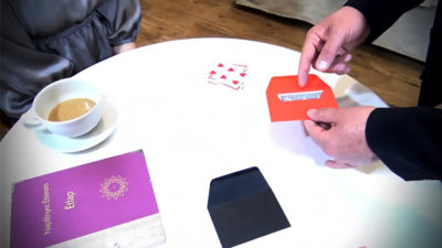 This is a gambling effect where the spectators have the chance to win a banknote, with no financial risk. There are two envelopes, one red and one black. In one of these envelopes is a bank note. From a shuffled deck the spectators eliminate cards until there is only one left. The spectator can win the banknote if the color of the last card matches with the color of the envelope with the banknote. But this will never happened! As a highlight of the routine: in the envelope matching the color of the last card, there is a prediction card with an opposing colored back. This card perfectly matches the value and suit of the last card.