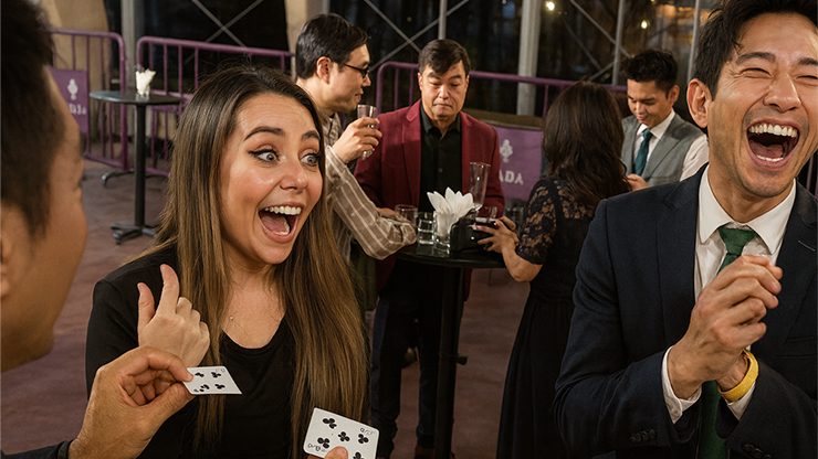 Two spectators each sign their own card. The cards are openly torn in half, leaving no doubt that they’re destroyed. The torn pieces are placed into their hands-yet with a touch of magic, something extraordinary happens.