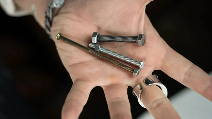 You hand a nut and bolt to an audience member and have them thread the nut partially onto the bolt to prove that everything is as it should be.