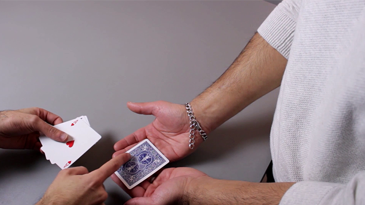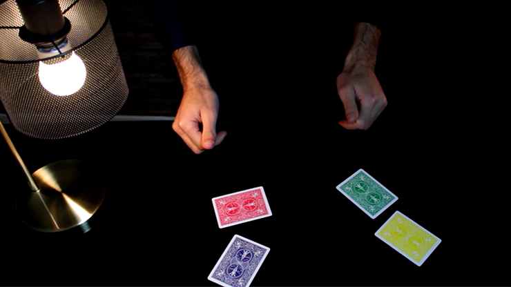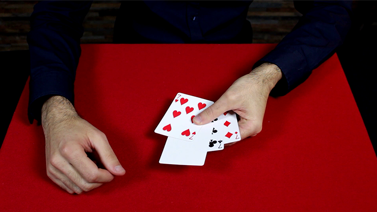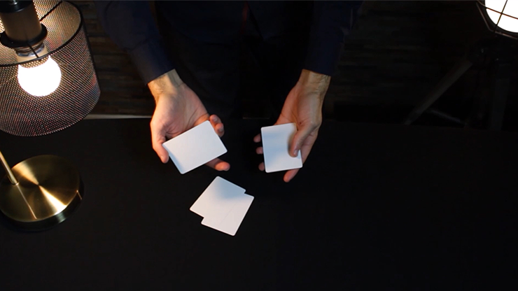 4 blank cards are shown to the spectator. Two are placed in the spectator’s hands, and the other two blank cards are placed in your hands. Magically, the faces of the cards appear!
