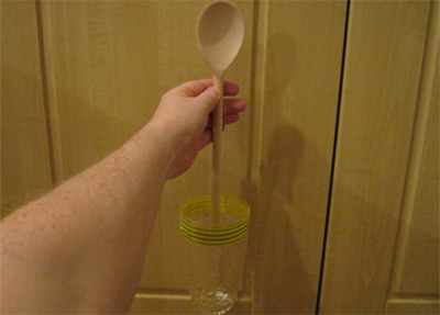 You then prove how “solid” the lolly is. You spin the wand around in the air, causing the glass to rotate fully 360 degrees several times, without any liquid being spilled — the lolly is “solid.”